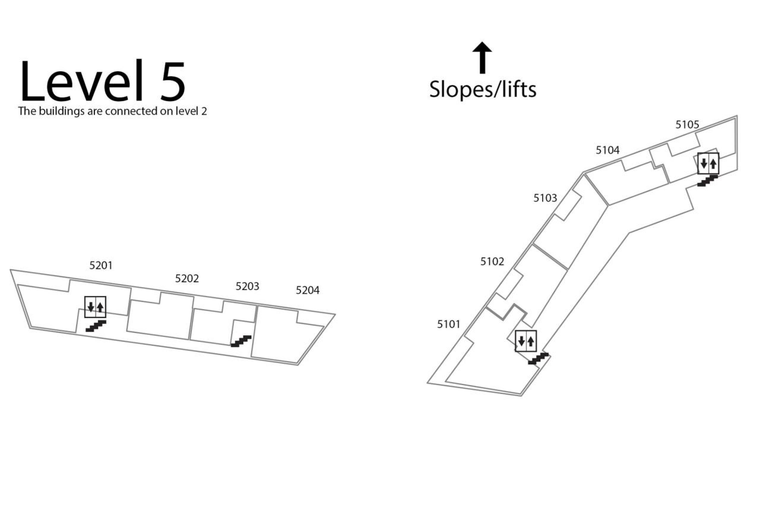 Ferienwohnung befindet sich auf Ebene 5, Lodge Suites, 8 Gästebetten, 100 m², Wohnzimmer mit integrierter Küche, 3 Schlafzimmer, 2 Duschen, 2 WC.