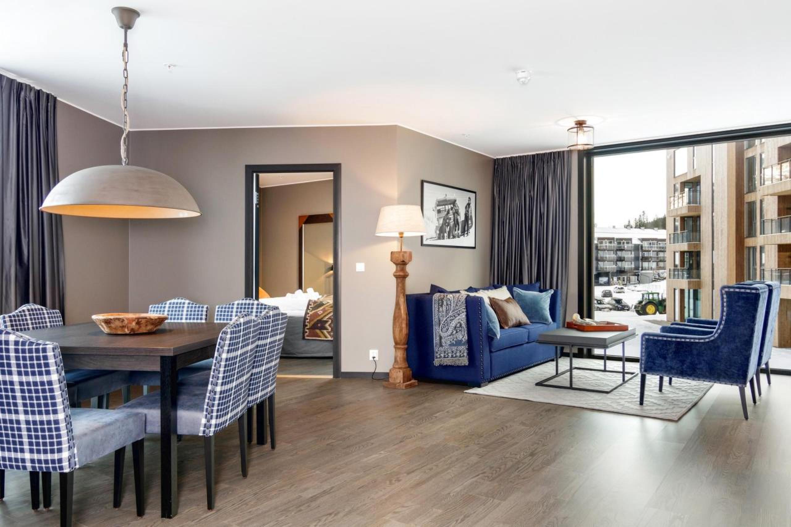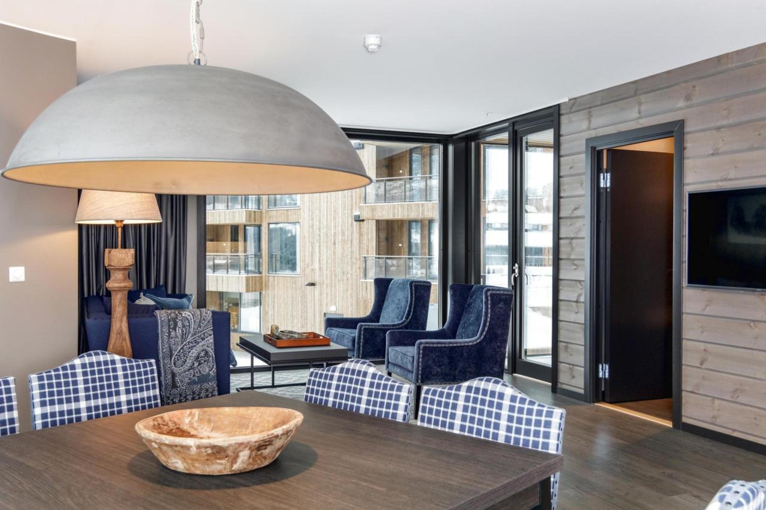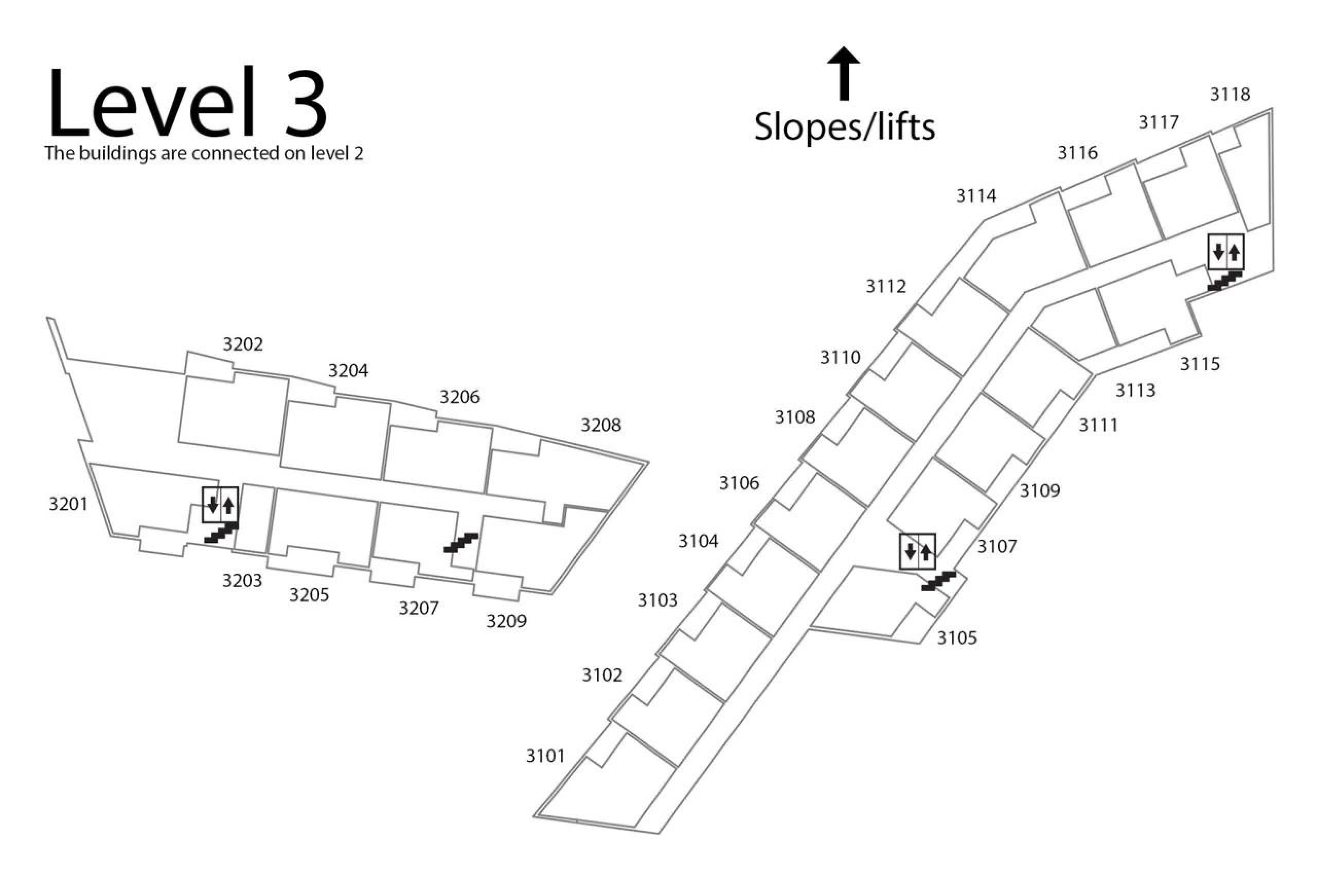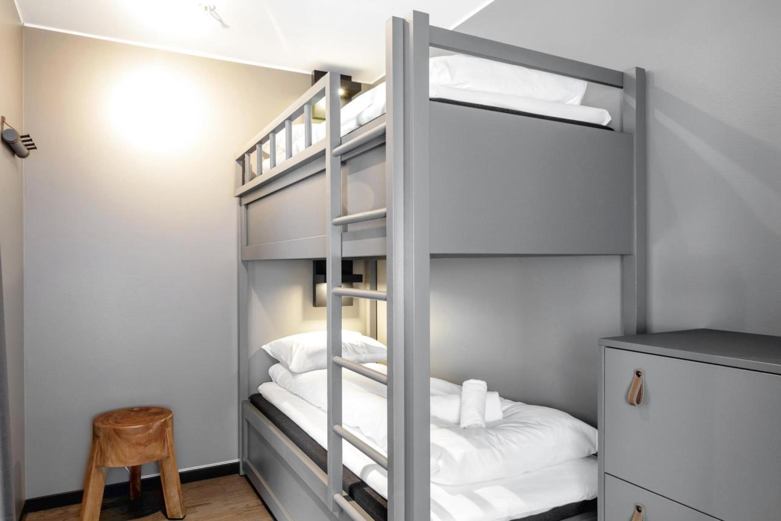 Ferienwohnung befindet sich auf Ebene 3, Lodge Suites, 6 Gästebetten, 80 m², Wohnzimmer mit integrierter Küche, 3 Schlafzimmer, 1 Dusche, 2 WC.