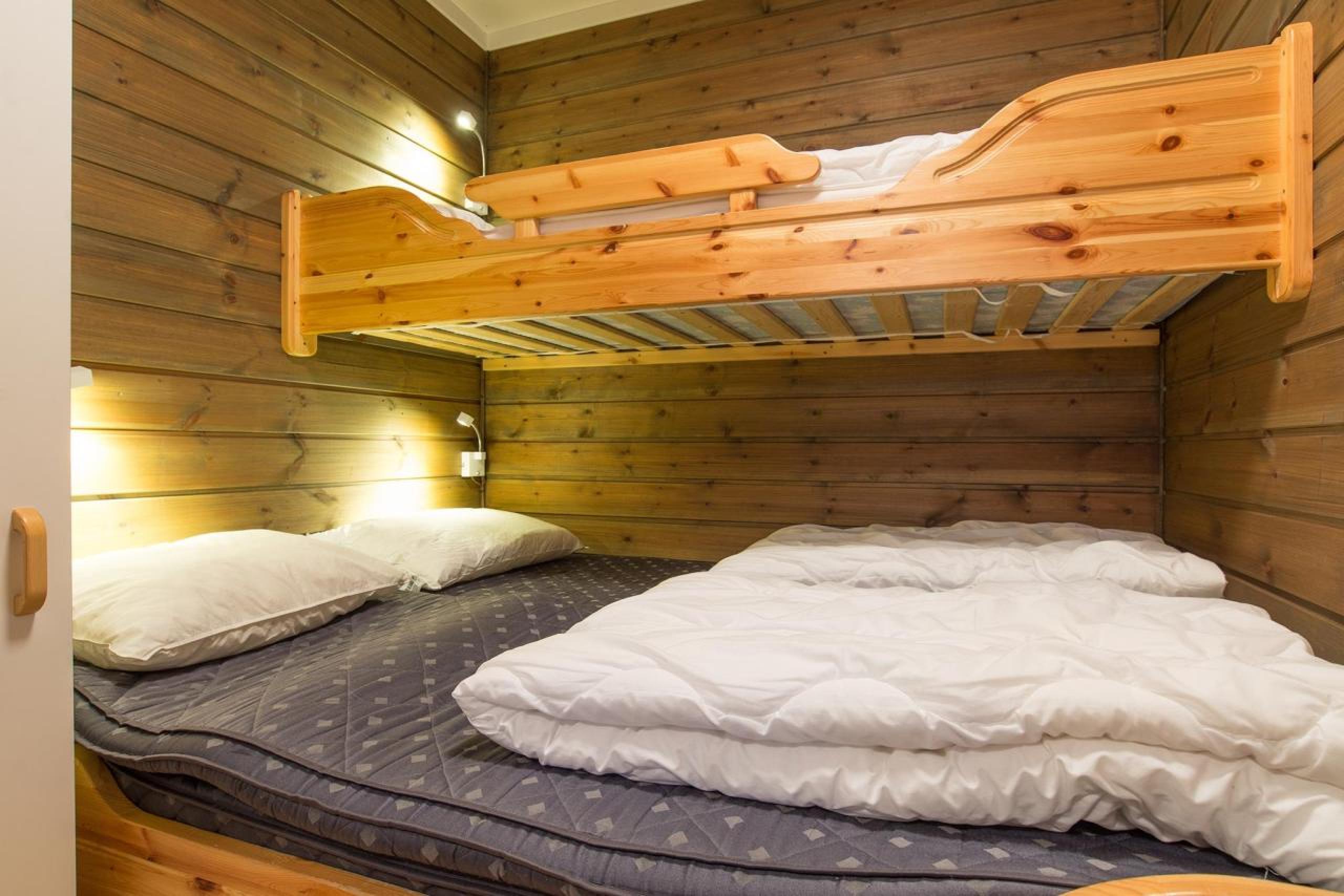 Schlafzimmer (ohne Fenster)= 1 Etagenbett, bei dem das untere Bett 150 cm breit ist.