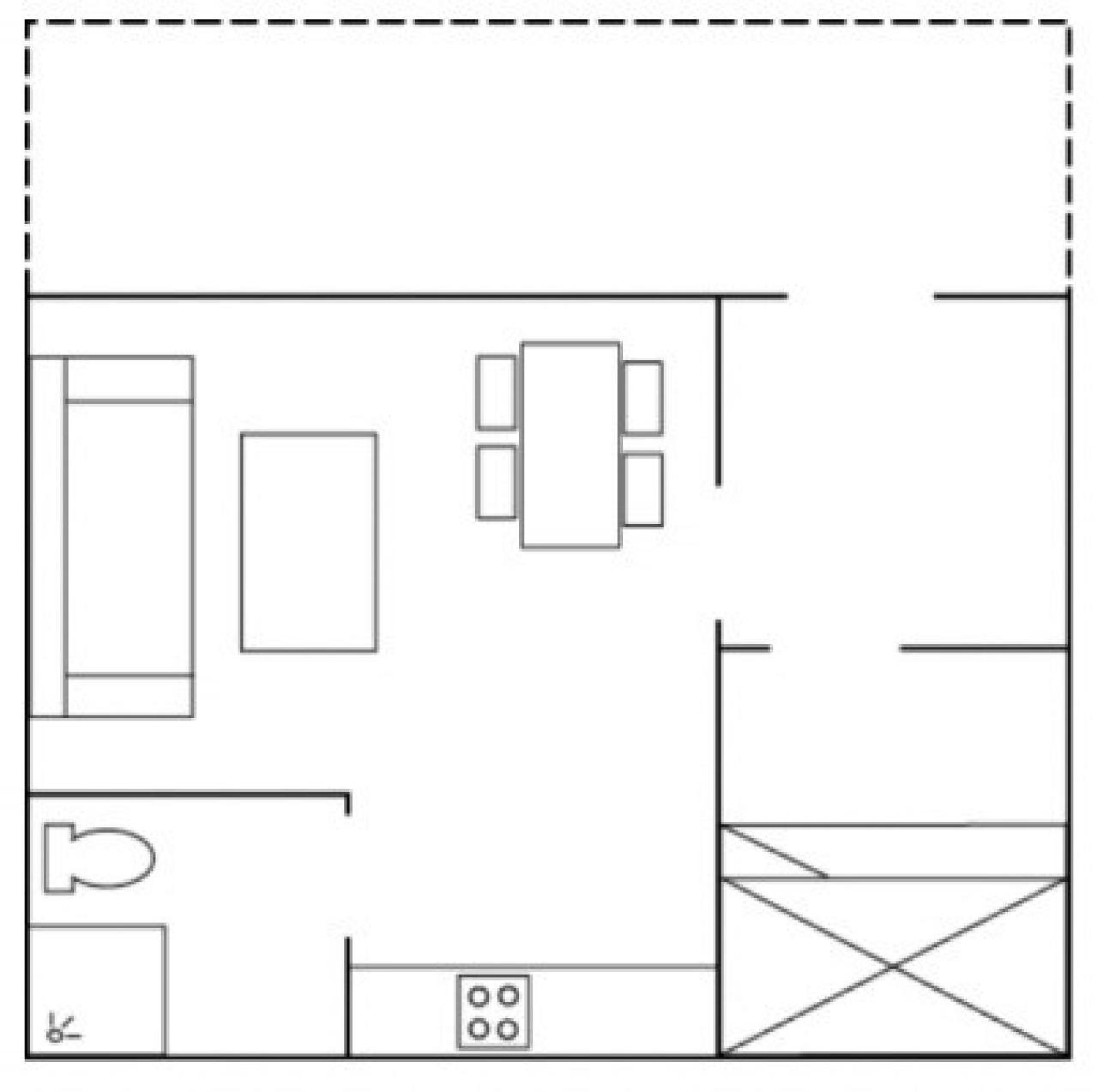 Ferienwohnung im zweiten Stock, 3+1 Gästebetten, 27 m2, Wohnzimmer mit integrierter Küche, 1 Schlafzimmer, 1 Dusche, 1 WC.