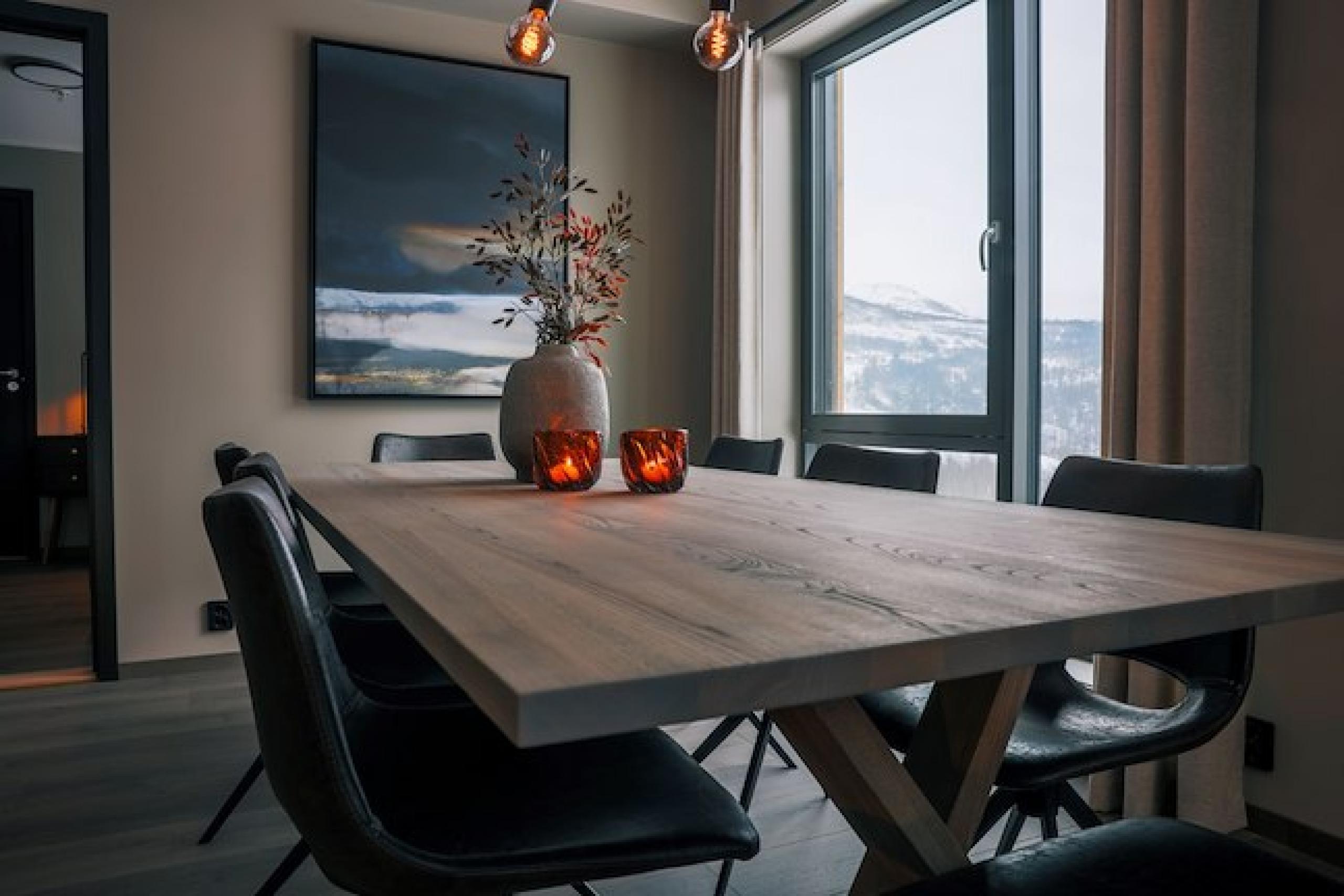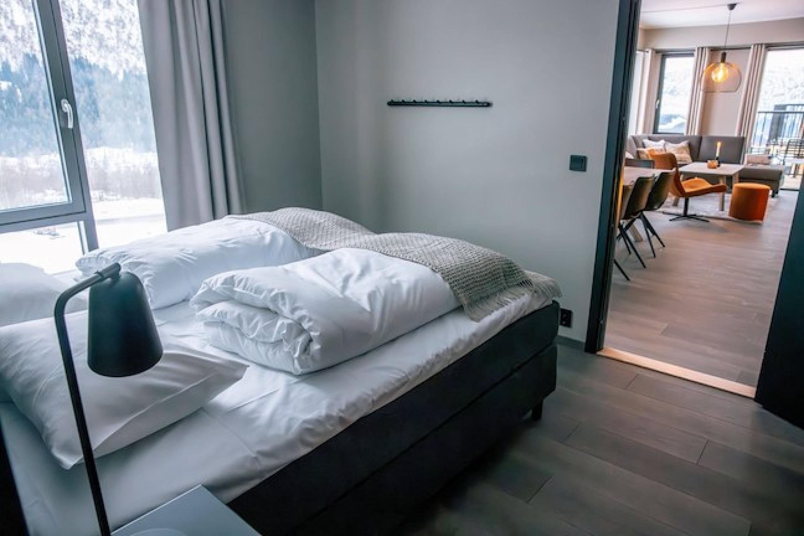 Dieses moderne und geräumige Appartement befindet sich im Erdgeschoss eines 2025 neu gebauten Appartementgebäudes. Es liegt in unmittelbarer Nähe zum Myrkdalen Hotel und in Fußdistanz zu den Alpinpisten und Langlaufloipen.